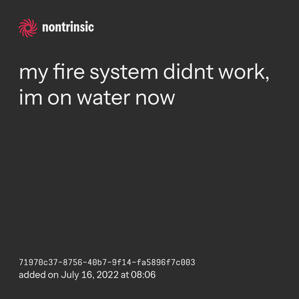 partagermy fire system didnt work, im on water now