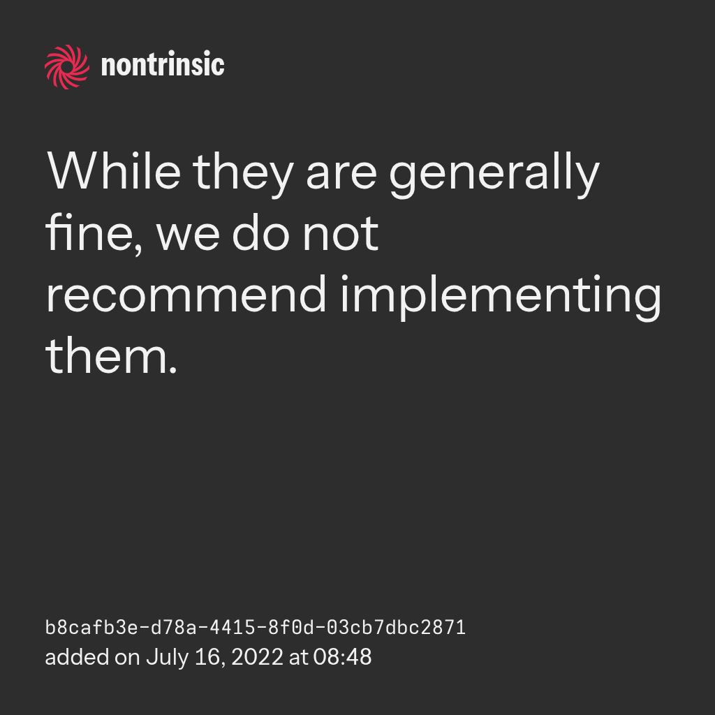 partagerWhile they are generally fine, we do not recommend implementing them.
