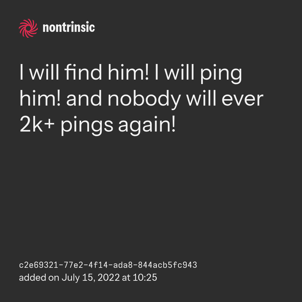 partagerI will find him! I will ping him! and nobody will ever 2k+ pings again!