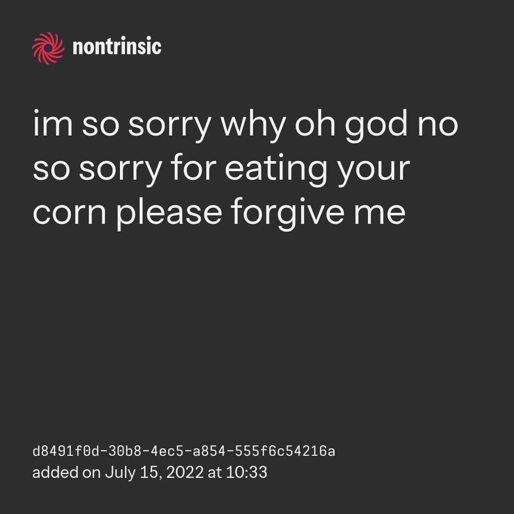 partagerim so sorry why oh god no so sorry for eating your corn please forgive me
