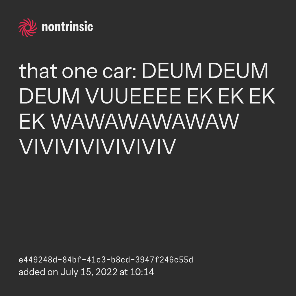 partagerthat one car: DEUM DEUM DEUM VUUEEEE EK EK EK EK WAWAWAWAWAW VIVIVIVIVIVIVIV