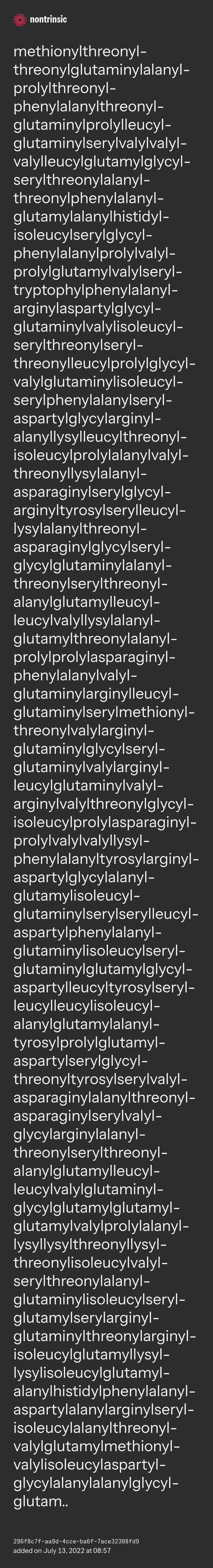 partagermethionylthreonylthreonylglutaminylalanylprolylthreonylphenylalanylthreonylglutaminylprolylleucylglutaminylserylvalylvalylvalylleucylglutamylglycylserylthreonylalanylthreonylphenylalanylglutamylalanylhistidylisoleucylserylglycylphenylalanylprolylvalylprolylglutamylvalylseryltryptophylphenylalanylarginylaspartylglycylglutaminylvalylisoleucylserylthreonylserylthreonylleucylprolylglycylvalylglutaminylisoleucylserylphenylalanylserylaspartylglycylarginylalanyllysylleucylthreonylisoleucylprolylalanylvalylthreonyllysylalanylasparaginylserylglycylarginyltyrosylserylleucyllysylalanylthreonylasparaginylglycylserylglycylglutaminylalanylthreonylserylthreonylalanylglutamylleucylleucylvalyllysylalanylglutamylthreonylalanylprolylprolylasparaginylphenylalanylvalylglutaminylarginylleucylglutaminylserylmethionylthreonylvalylarginylglutaminylglycylserylglutaminylvalylarginylleucylglutaminylvalylarginylvalylthreonylglycylisoleucylprolylasparaginylprolylvalylvalyllysylphenylalanyltyrosylarginylaspartylglycylalanylglutamylisoleucylglutaminylserylserylleucylaspartylphenylalanylglutaminylisoleucylserylglutaminylglutamylglycylaspartylleucyltyrosylserylleucylleucylisoleucylalanylglutamylalanyltyrosylprolylglutamylaspartylserylglycylthreonyltyrosylserylvalylasparaginylalanylthreonylasparaginylserylvalylglycylarginylalanylthreonylserylthreonylalanylglutamylleucylleucylvalylglutaminylglycylglutamylglutamylglutamylvalylprolylalanyllysyllysylthreonyllysylthreonylisoleucylvalylserylthreonylalanylglutaminylisoleucylserylglutamylserylarginylglutaminylthreonylarginylisoleucylglutamyllysyllysylisoleucylglutamylalanylhistidylphenylalanylaspartylalanylarginylserylisoleucylalanylthreonylvalylglutamylmethionylvalylisoleucylaspartylglycylalanylalanylglycylglutam..