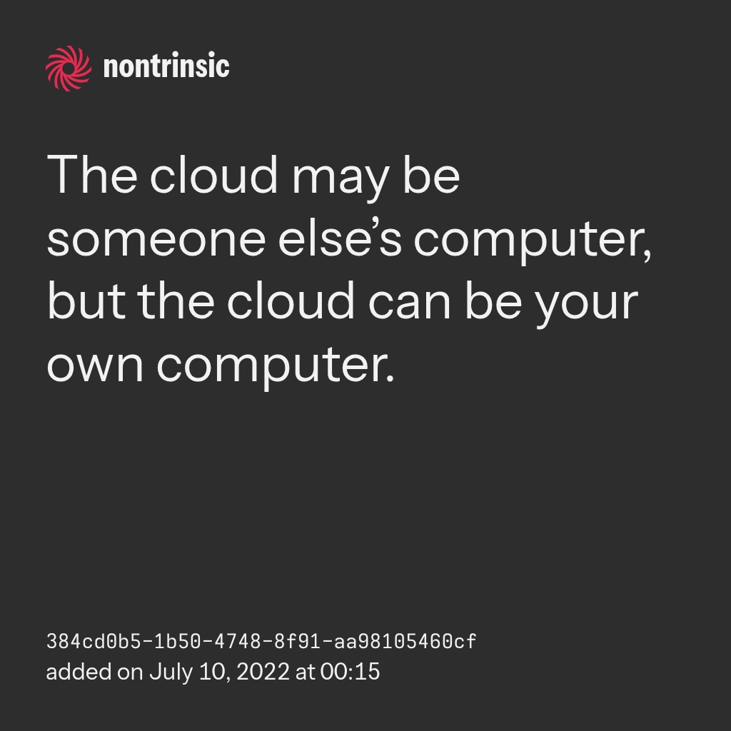 partagerThe cloud may be someone else’s computer, but the cloud can be your own computer.