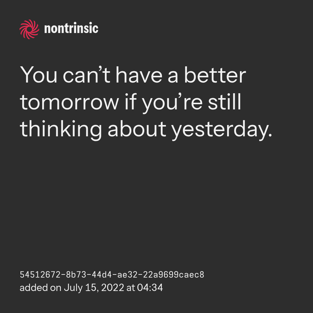 You can’t have a better tomorrow if you’re still thinking about yesterday.