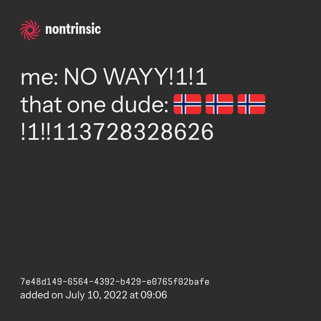 that one dude: 🇳🇴 🇳🇴 🇳🇴!1!!113728328626