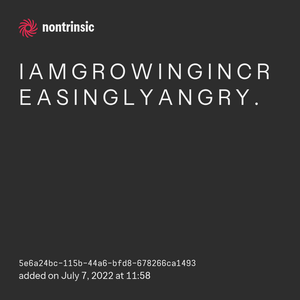 I A M G R O W I N G I N C R E A S I N G L Y A N G R Y .