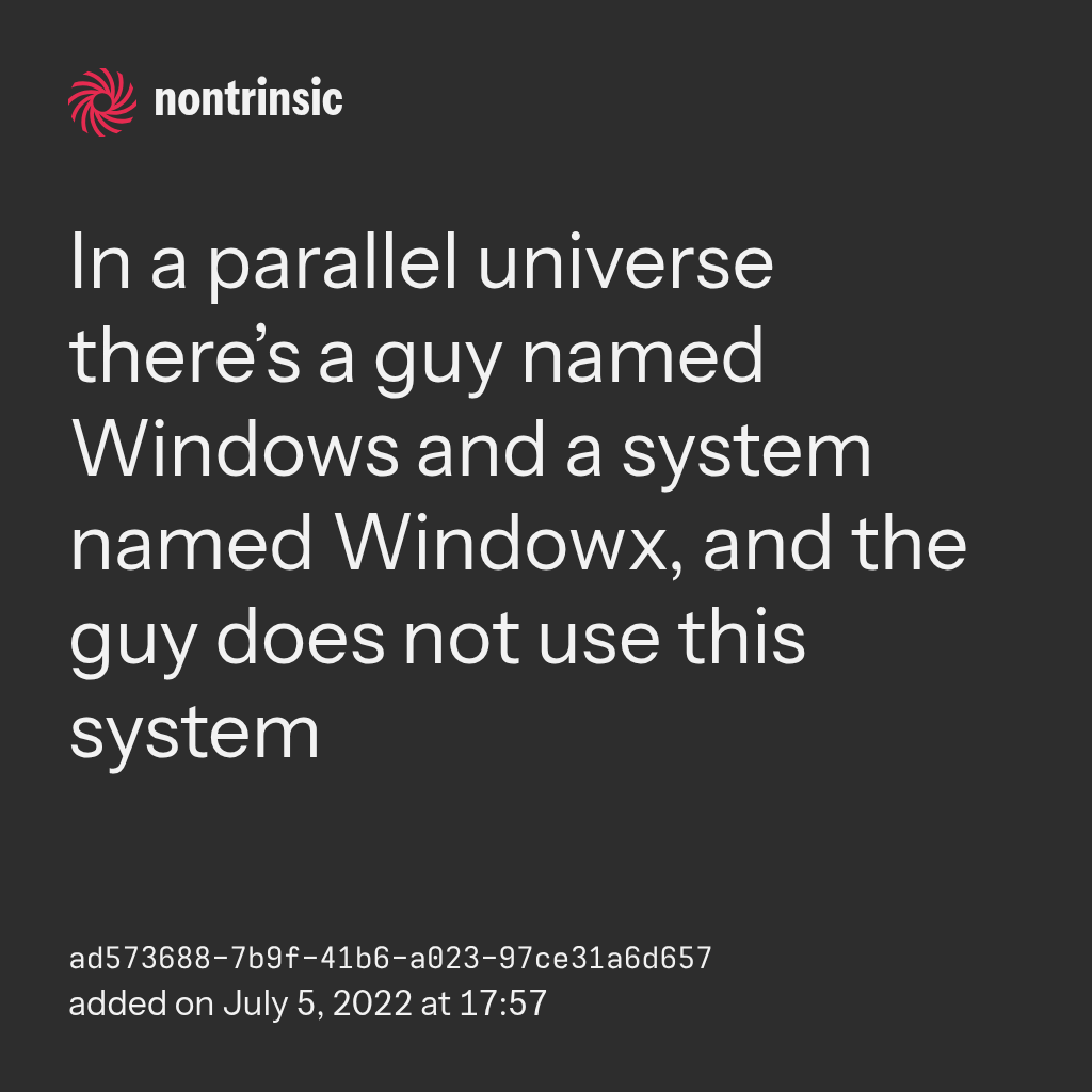 partagerIn a parallel universe there’s a guy named Windows and a system named Windowx, and the guy does not use this system