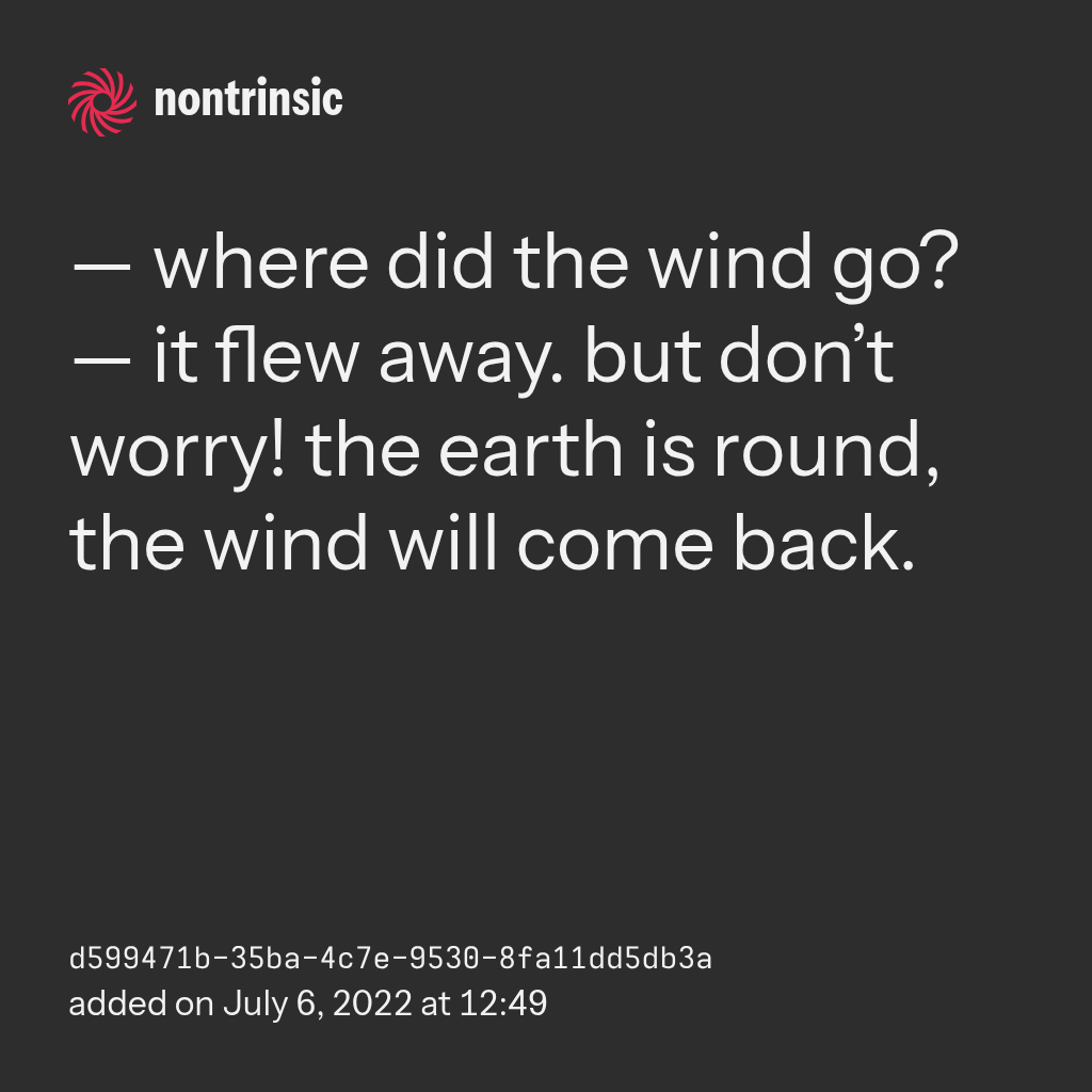 — it flew away. but don’t worry! the earth is round, the wind will come back.