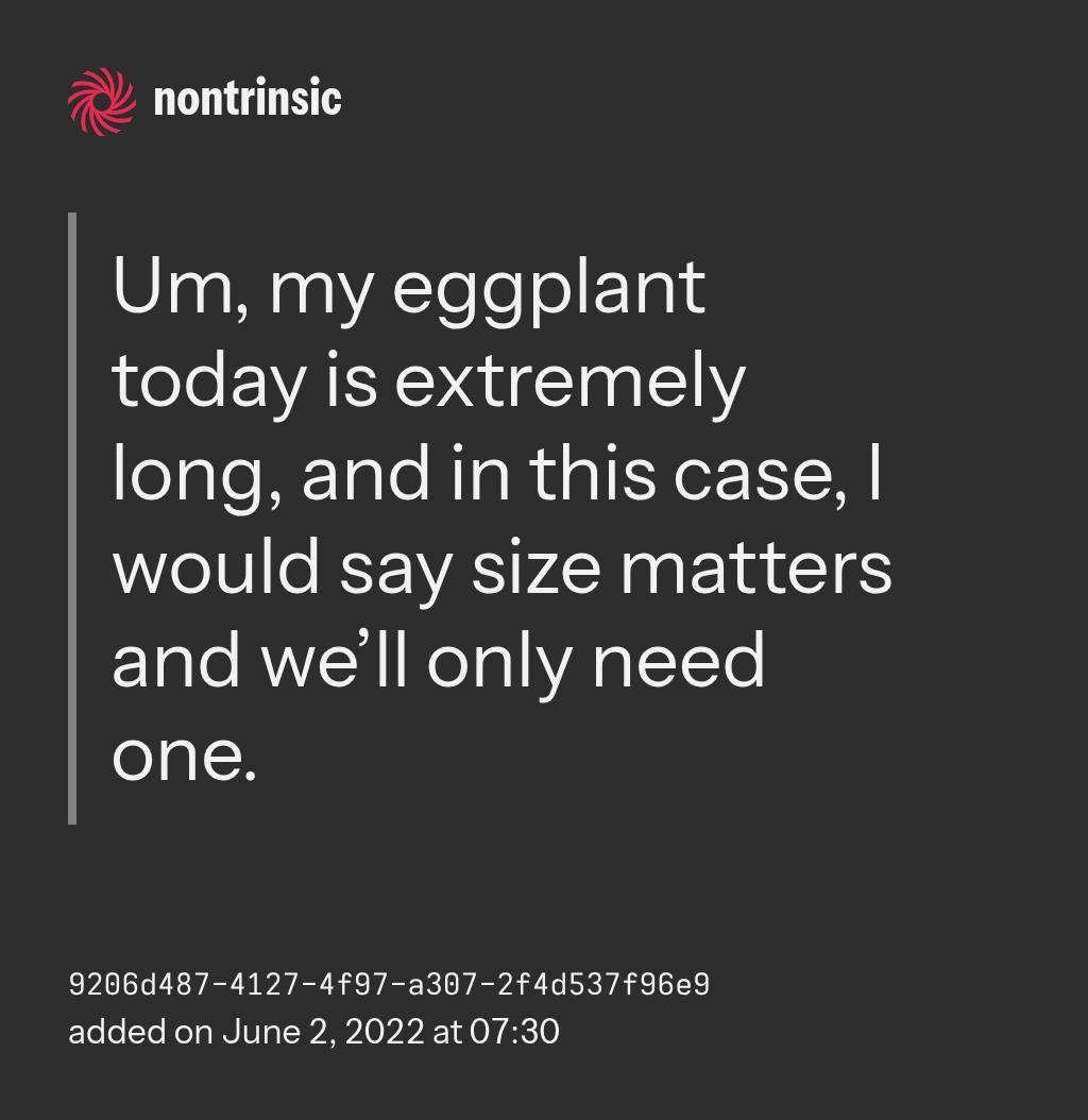 partagerUm, my eggplant today is extremely long, and in this case, I would say size matters and we’ll only need one.