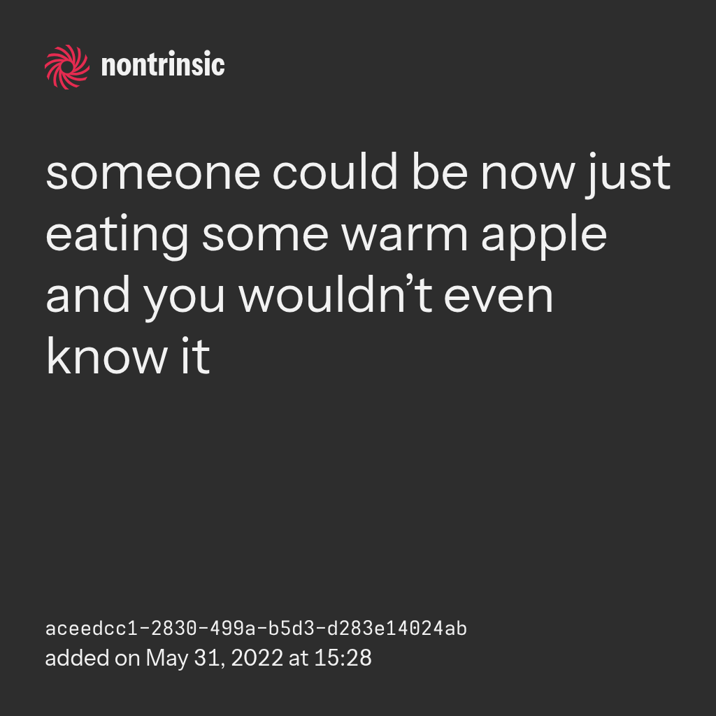 partagersomeone could be now just eating some warm apple and you wouldn’t even know it