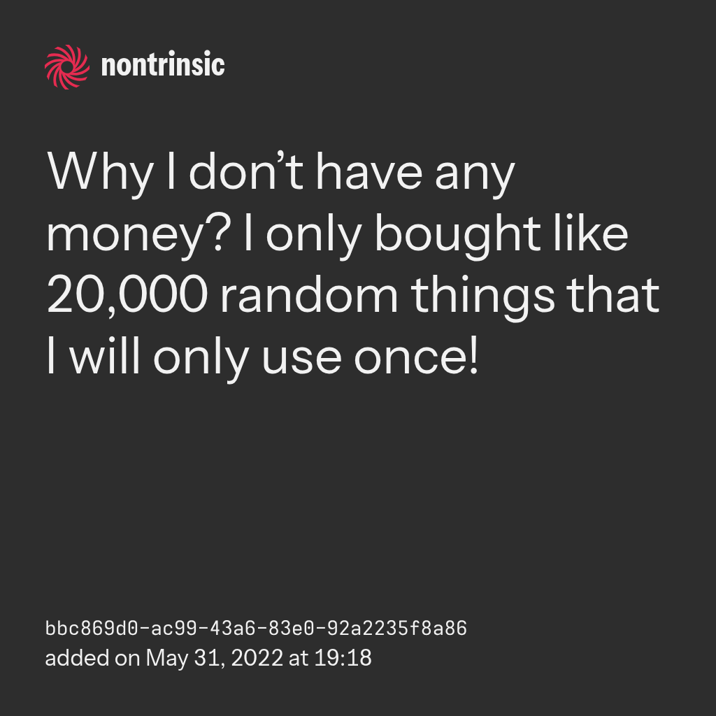partagerWhy I don’t have any money? I only bought like 20,000 random things that I will only use once!