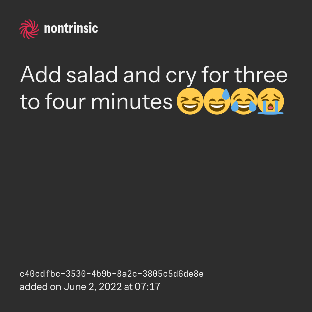 partagerAdd salad and cry for three to four minutes 😆😅😂😭