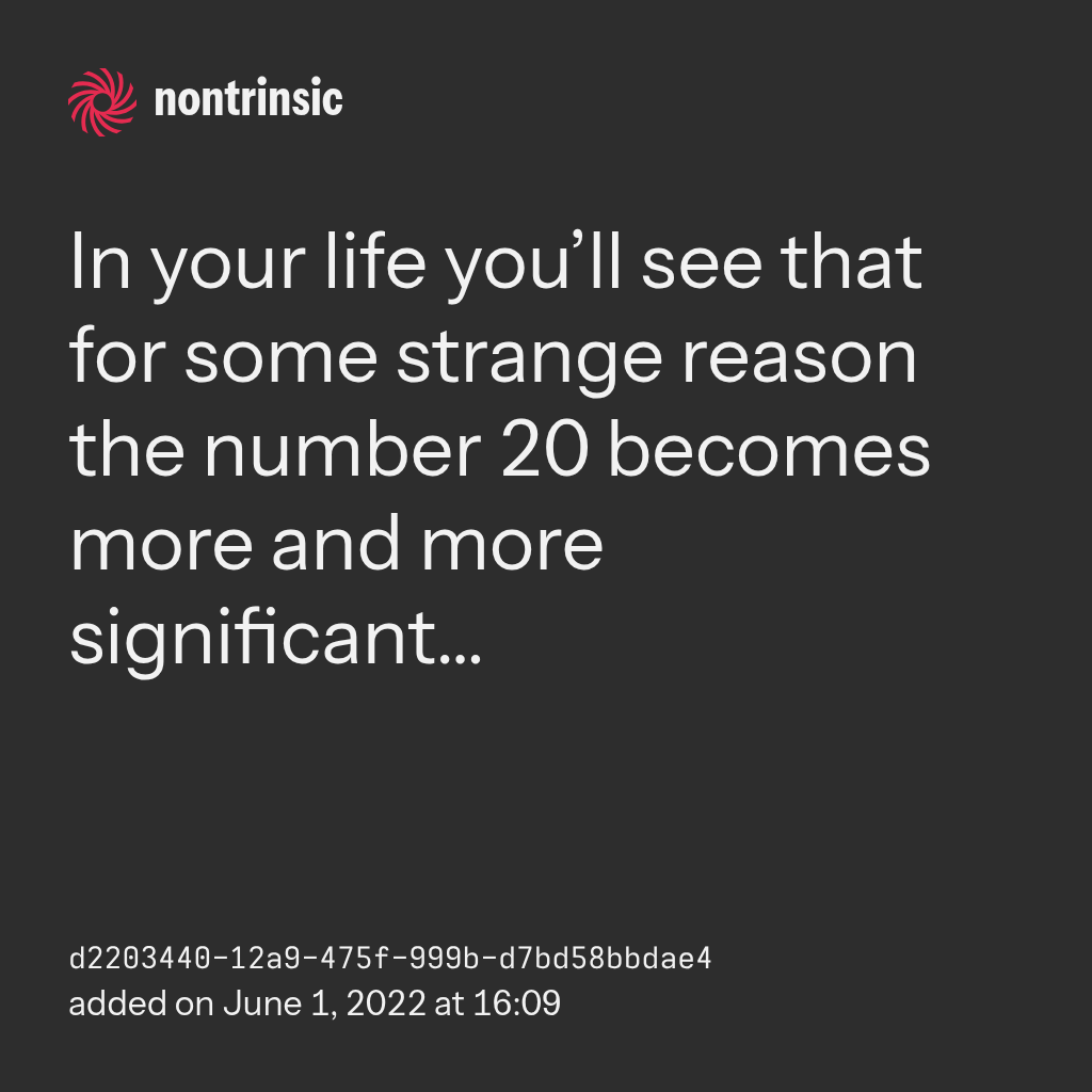 partagerIn your life you’ll see that for some strange reason the number 42 becomes more and more significant…