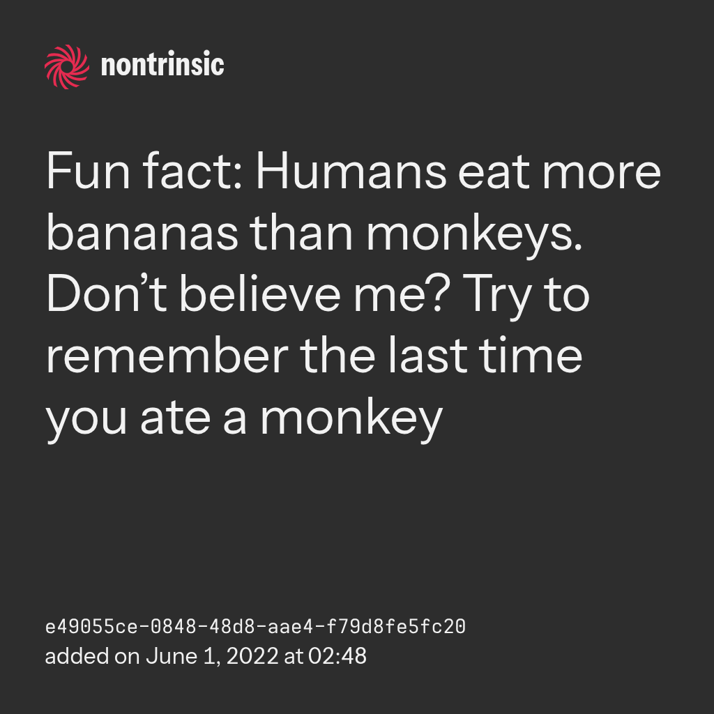 partagerFun fact: Humans eat more bananas than monkeys. Don’t believe me? Try to remember the last time you ate a monkey