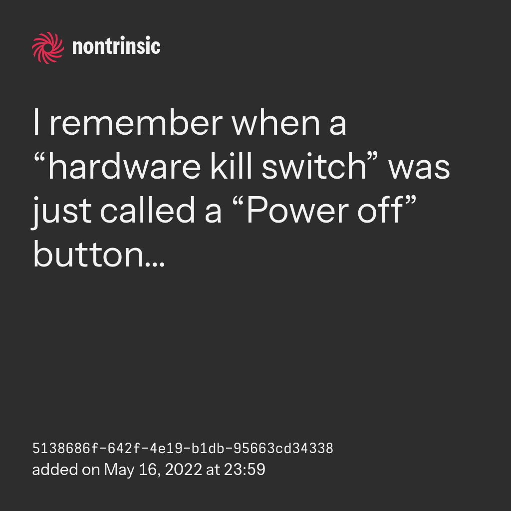 partagerI remember when a “hardware kill switch” was just called a “Power off” button…