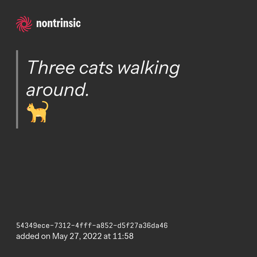 Three cats walking around.