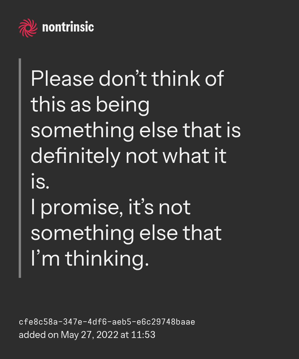 I promise, it’s not something else that I’m thinking.