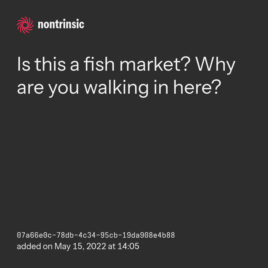 partagerIs this a fish market? Why are you walking in here?