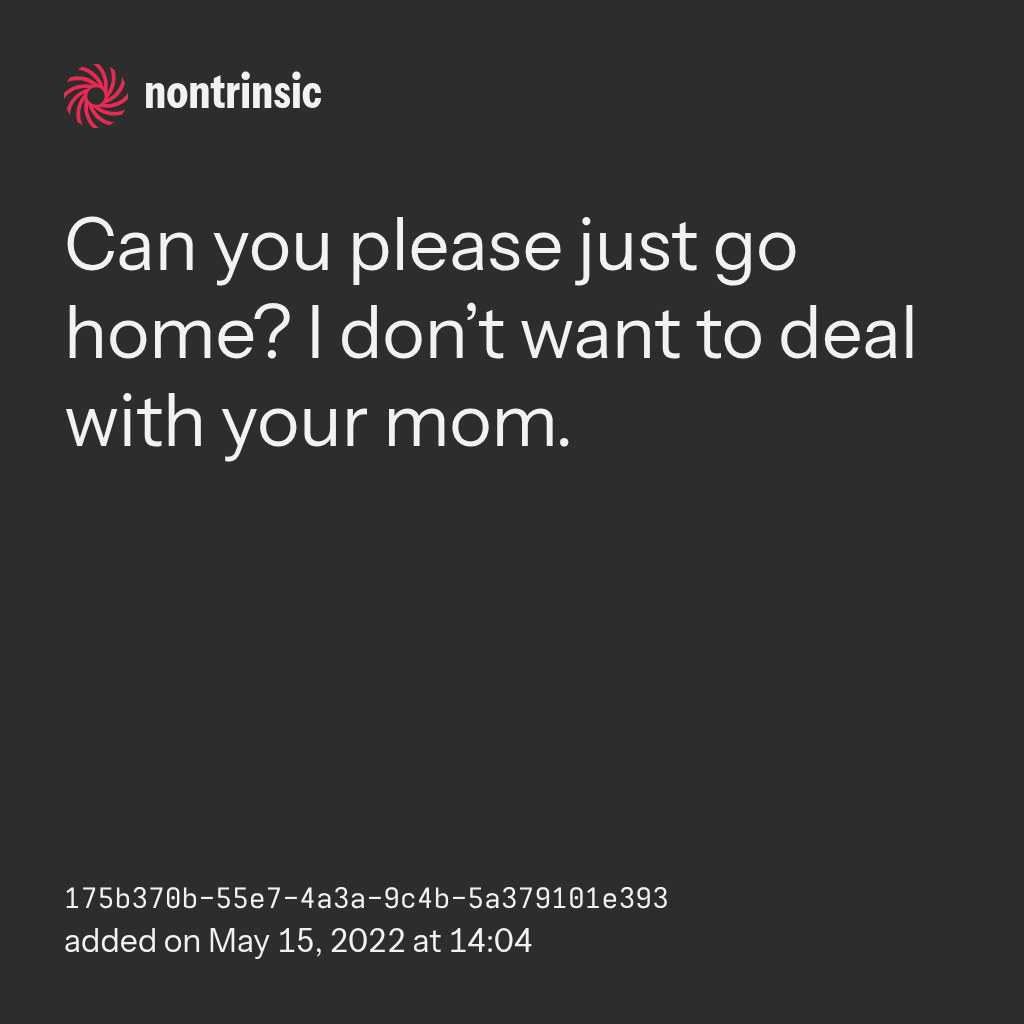 partagerCan you please just go home? I don’t want to deal with your mom.