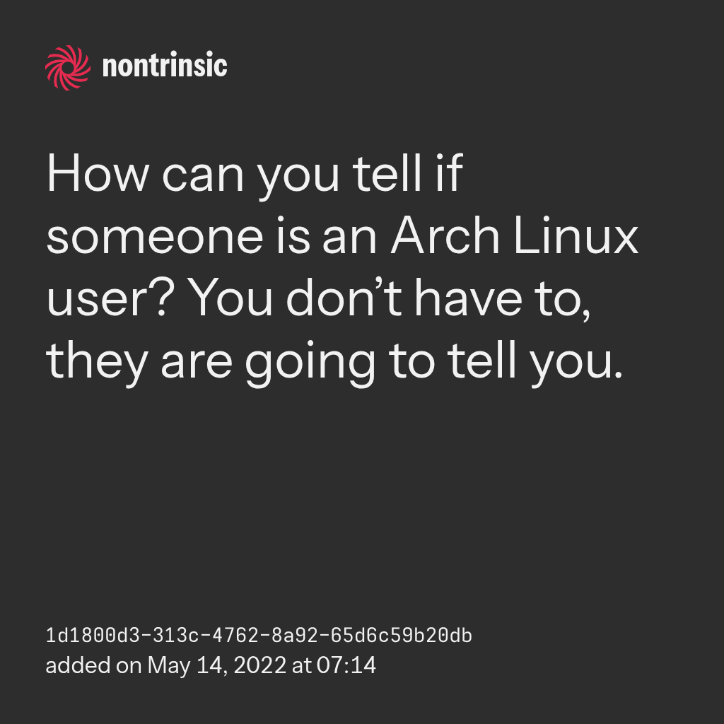 partagerHow can you tell if someone is an Arch Linux user? You don’t have to, they are going to tell you.