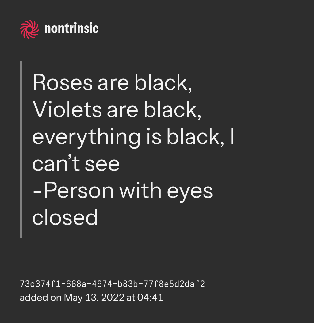 partagerRoses are black, Violets are black, everything is black, I can’t see
