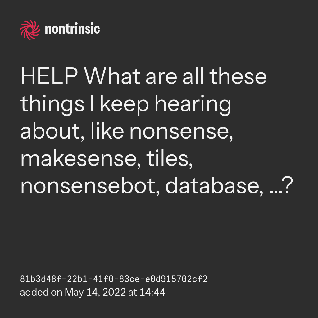 partagerHELP What are all these things I keep hearing about, like nonsense, makesense, tiles, nonsensebot, database, …?