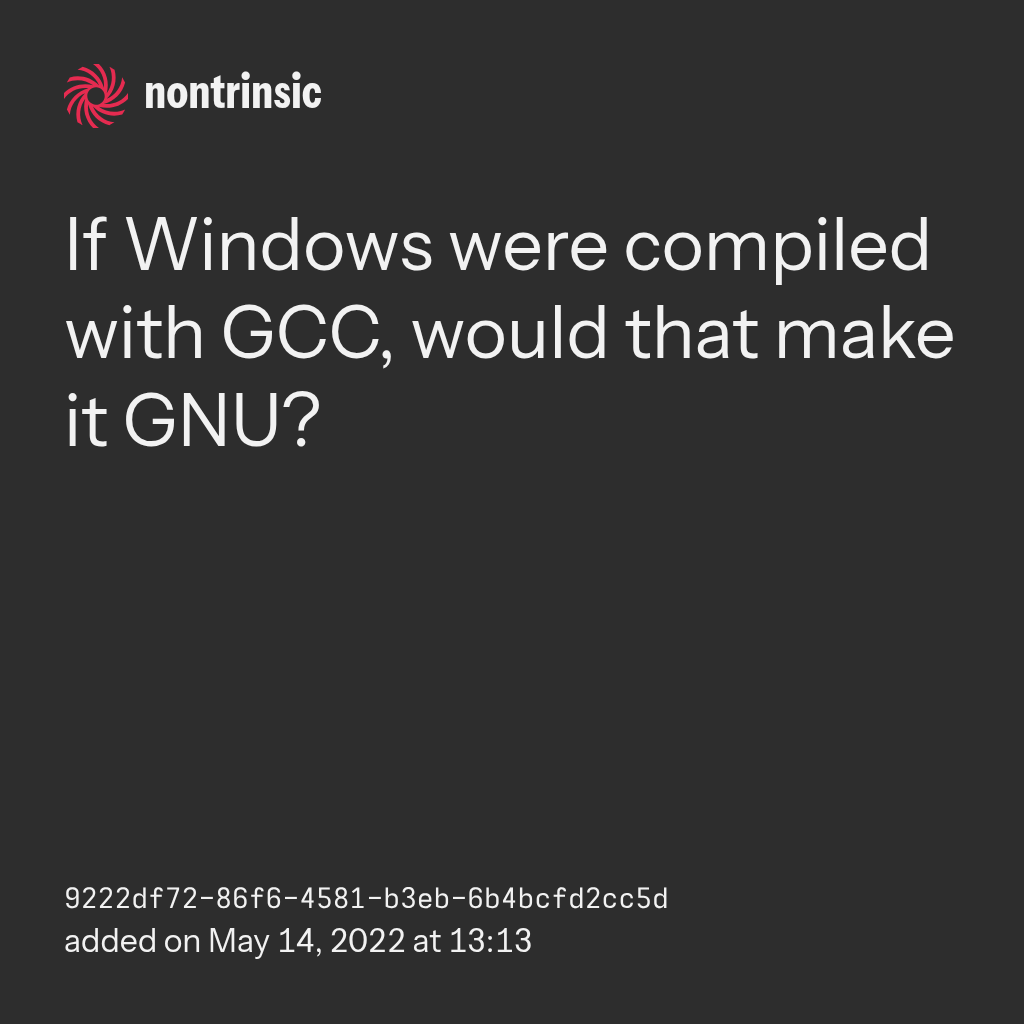 partagerIf Windows were compiled with GCC, would that make it GNU?