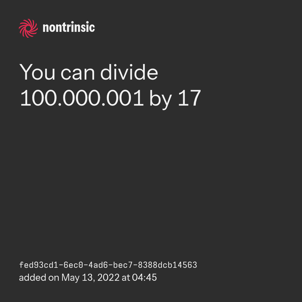 partagerYou can divide 100.000.001 by 17