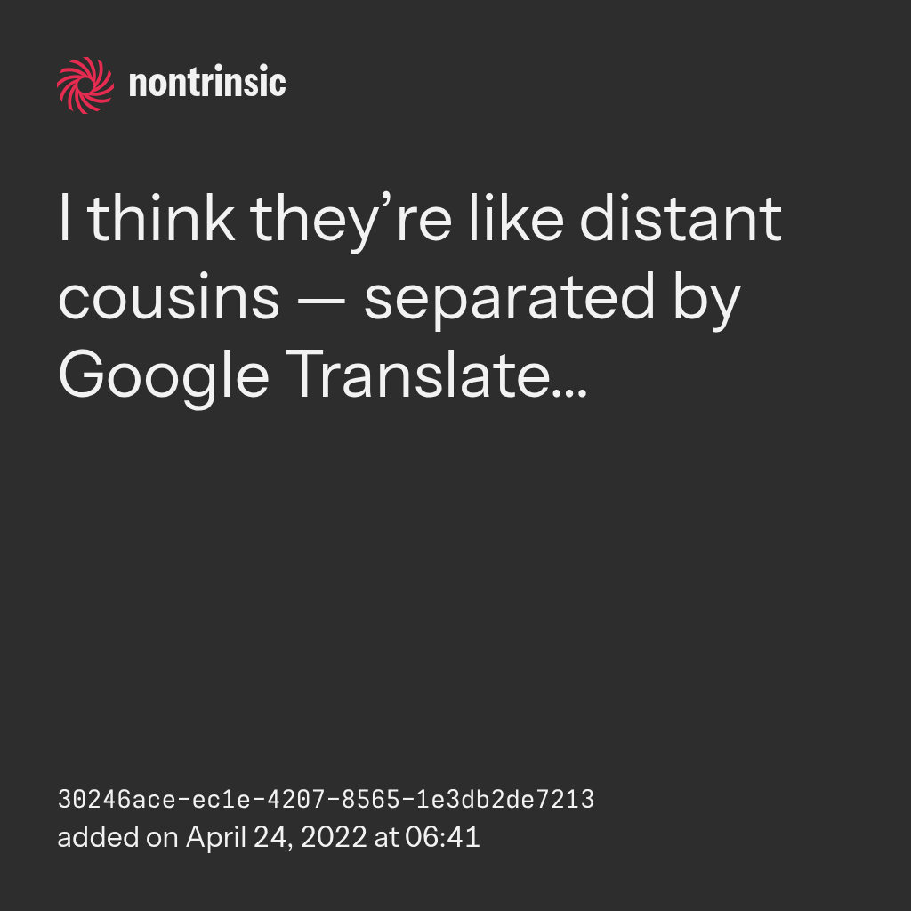 partagerI think they’re like distant cousins — separated by Google Translate…