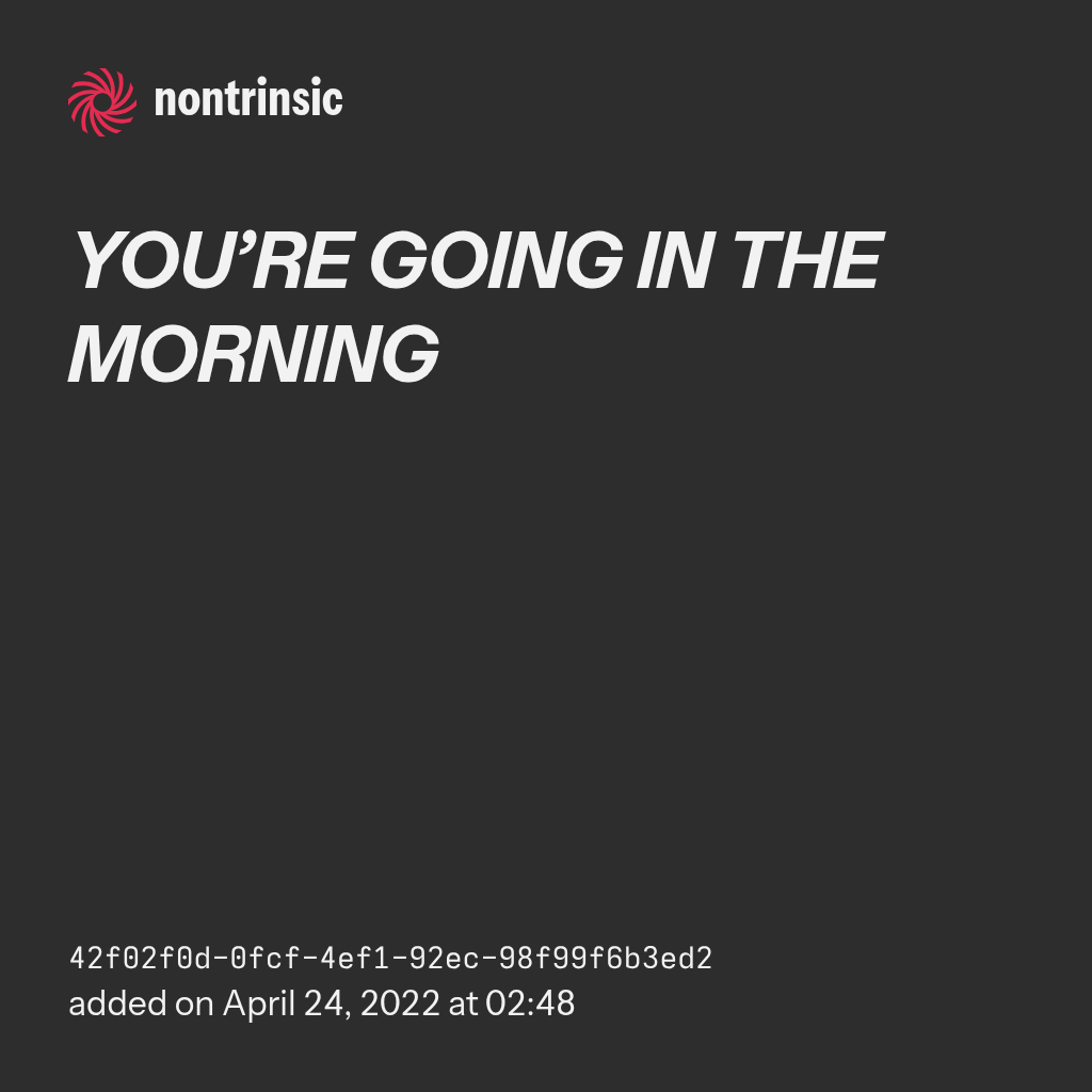 partagerYOU’RE GOING IN THE MORNING