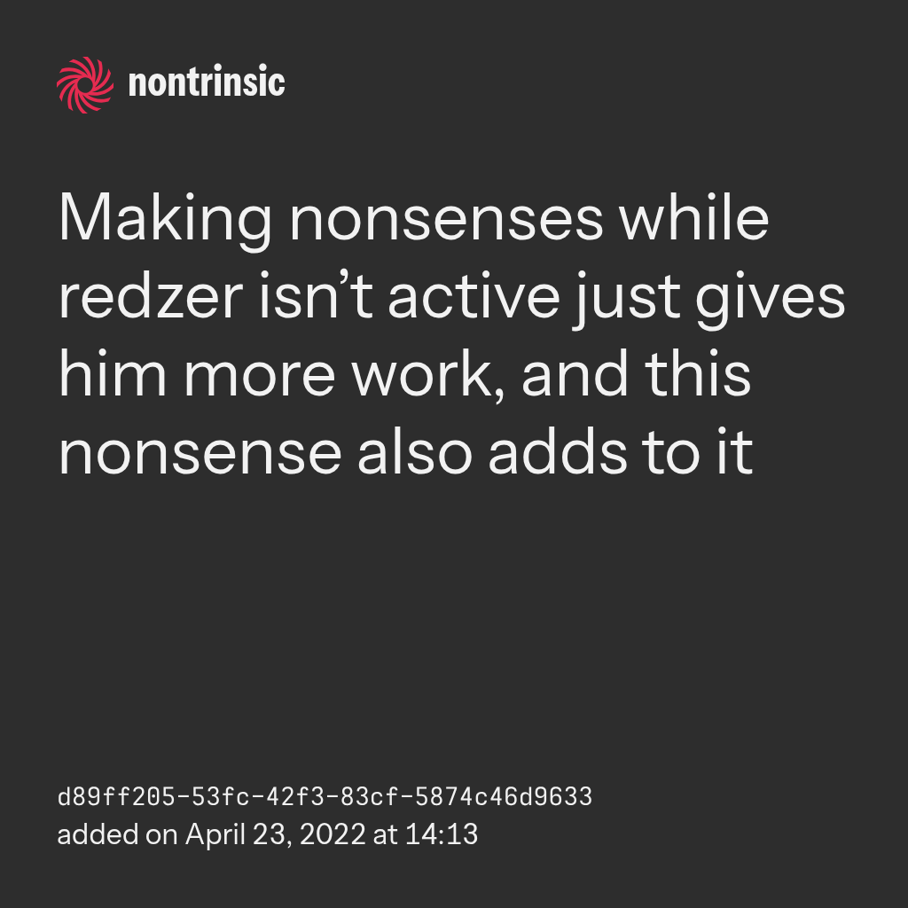 partagerMaking nonsenses while redzer isn’t active just gives him more work, and this nonsense also adds to it