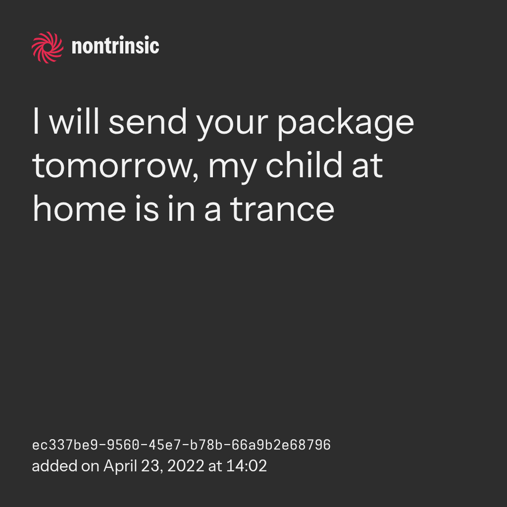 partagerI will send your package tomorrow, my child at home is in a trance