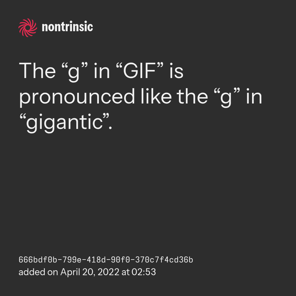 partagerThe “g” in “GIF” is pronounced like the “g” in “gigantic”.