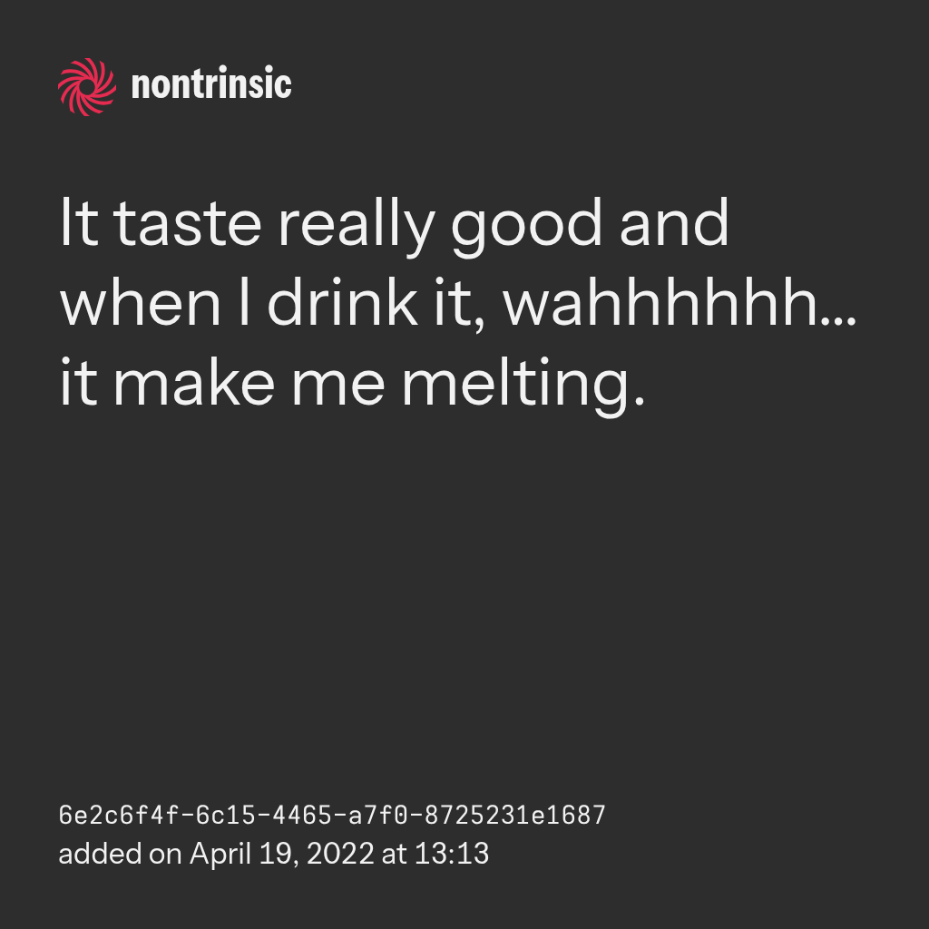 partagerIt taste really good and when I drink it, wahhhhhh… it make me melting.