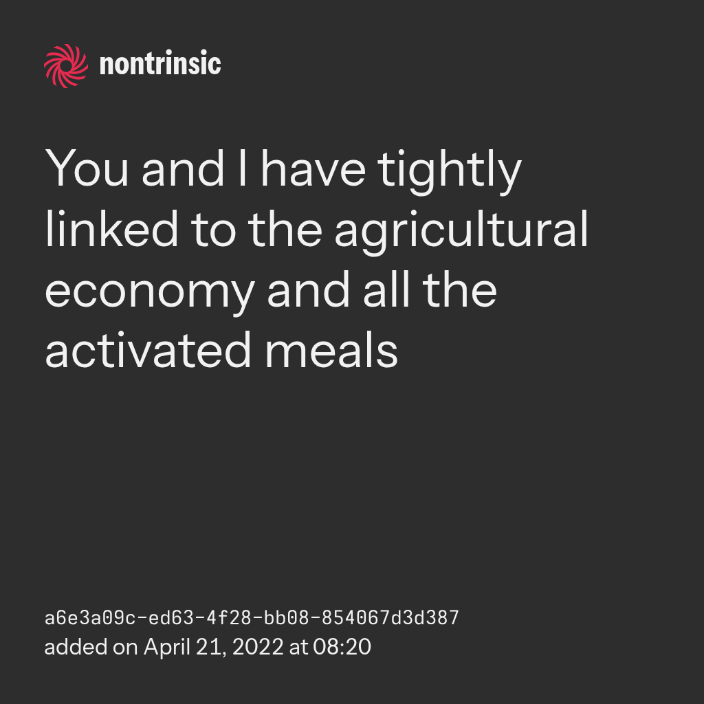 partagerYou and I have tightly linked to the agricultural economy and all the activated meals