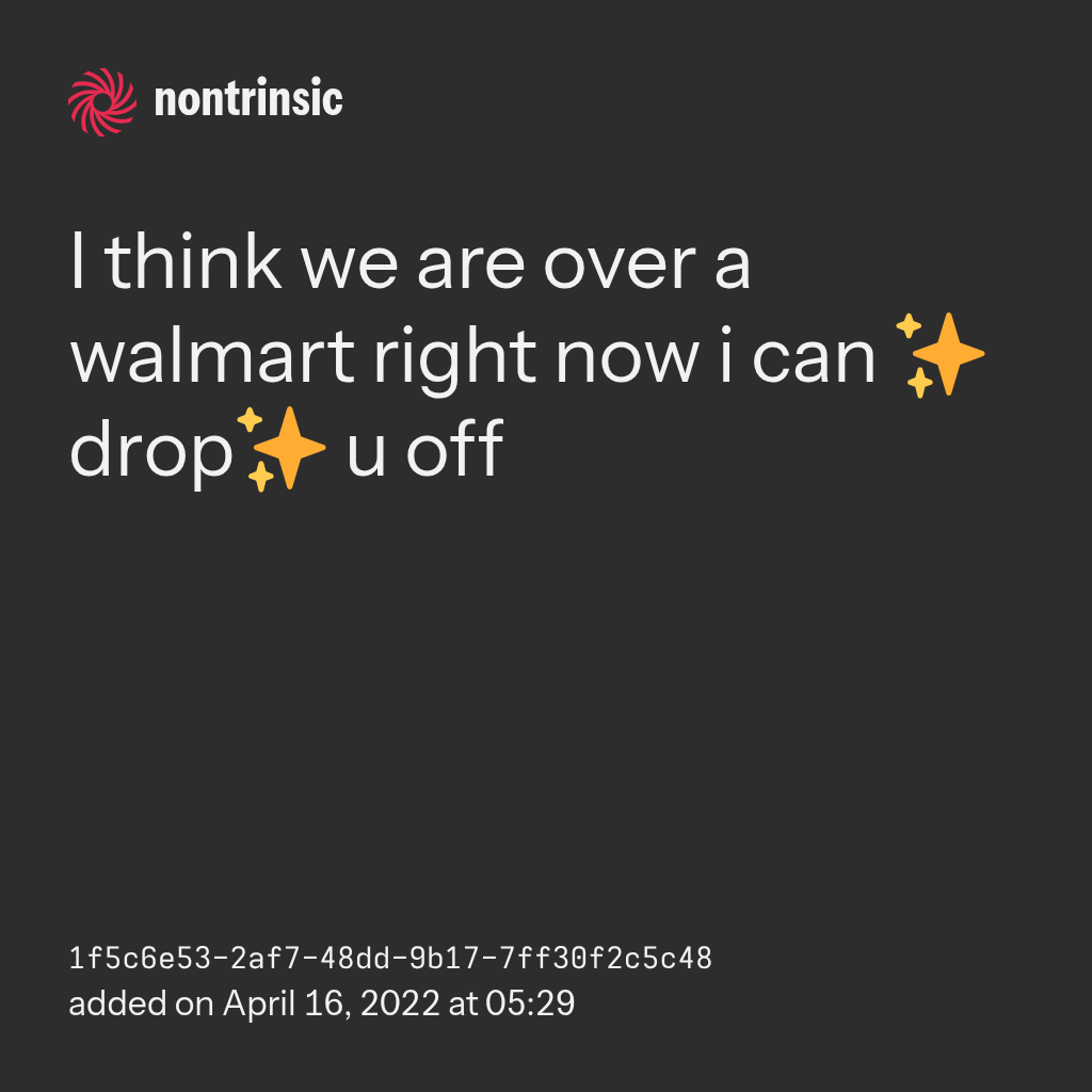 partagerI think we are over a walmart right now i can ✨drop✨ u off