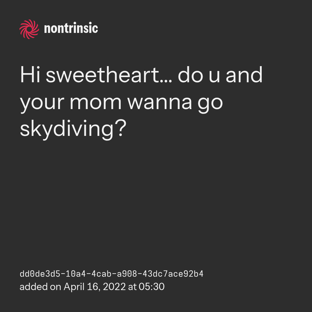 partagerHi sweetheart… do u and your mom wanna go skydiving?