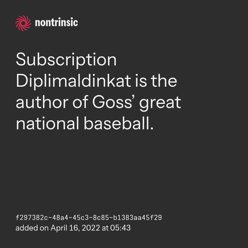 partagerSubscription Diplimaldinkat is the author of Goss’ great national baseball.