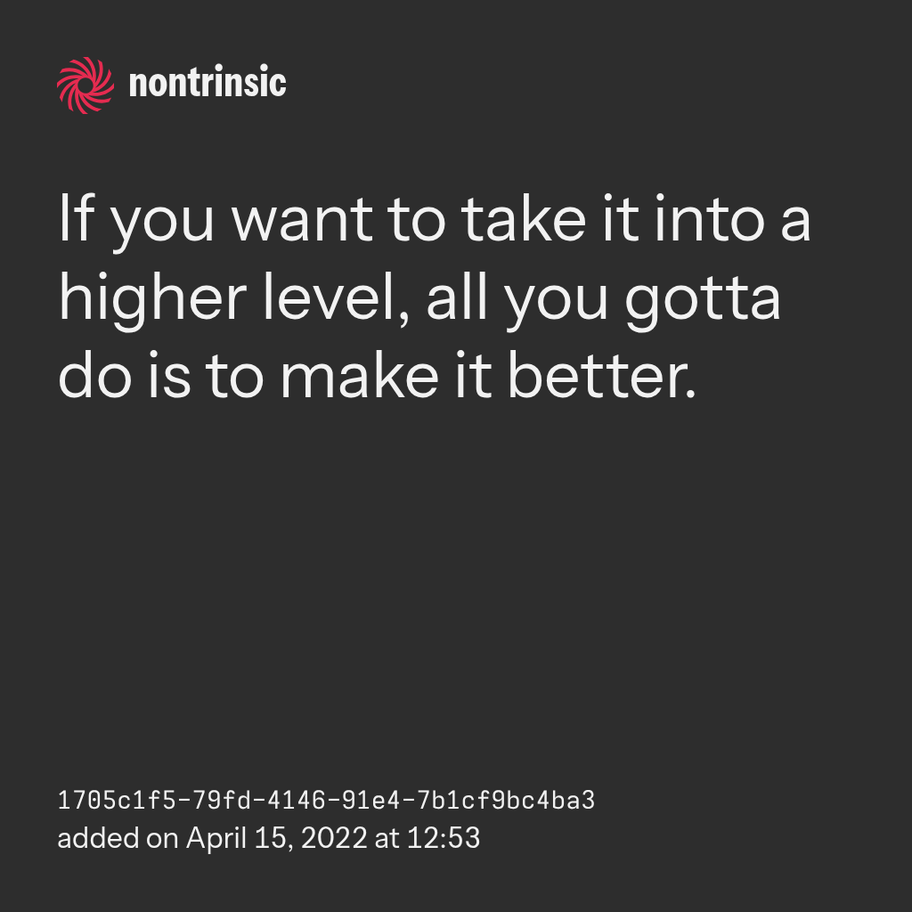partagerIf you want to take it into a higher level, all you gotta do is to make it better.