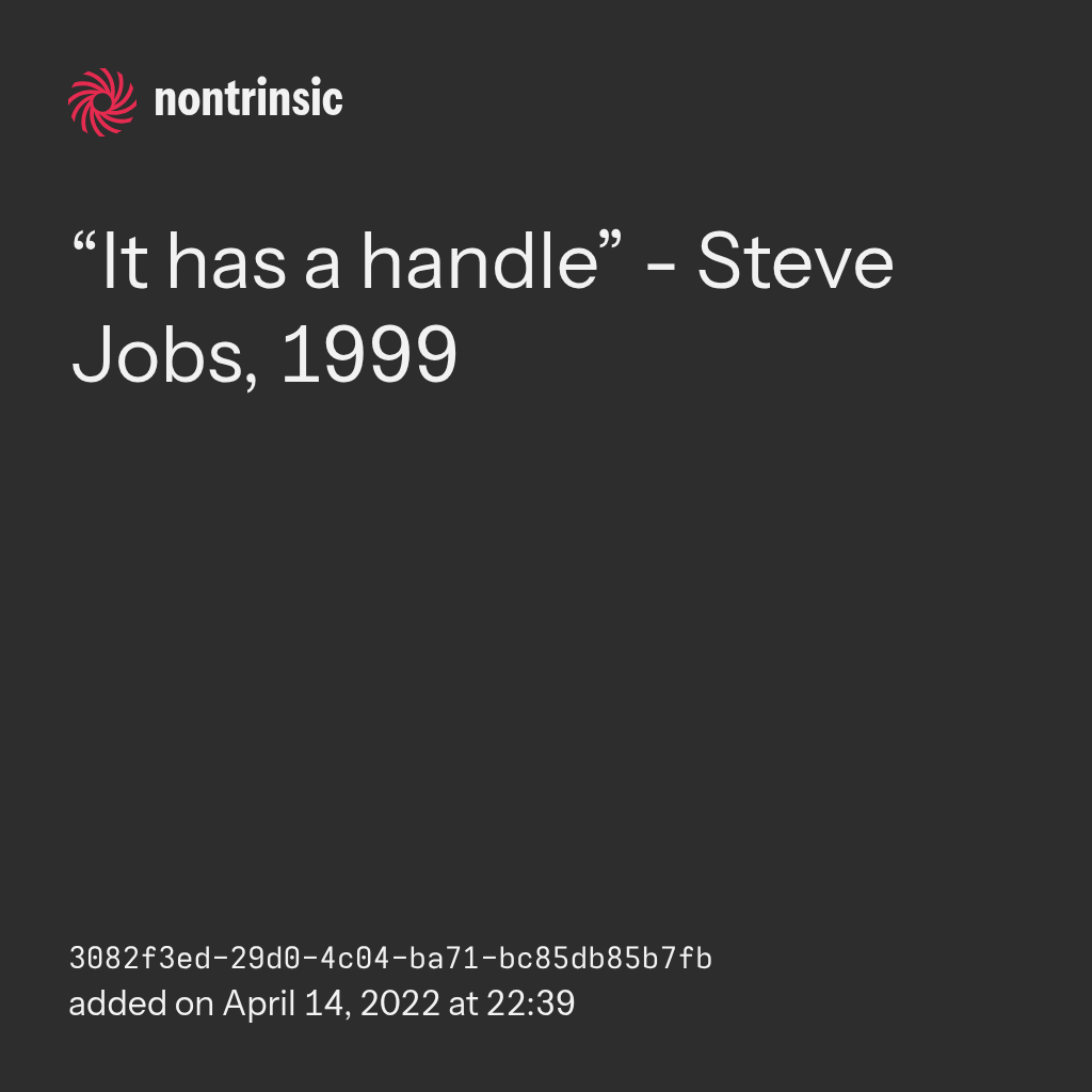 partager“UUUUUEEEEAAAAAAAAA” - Everyone after steve jobs said it has a handle, 1999
