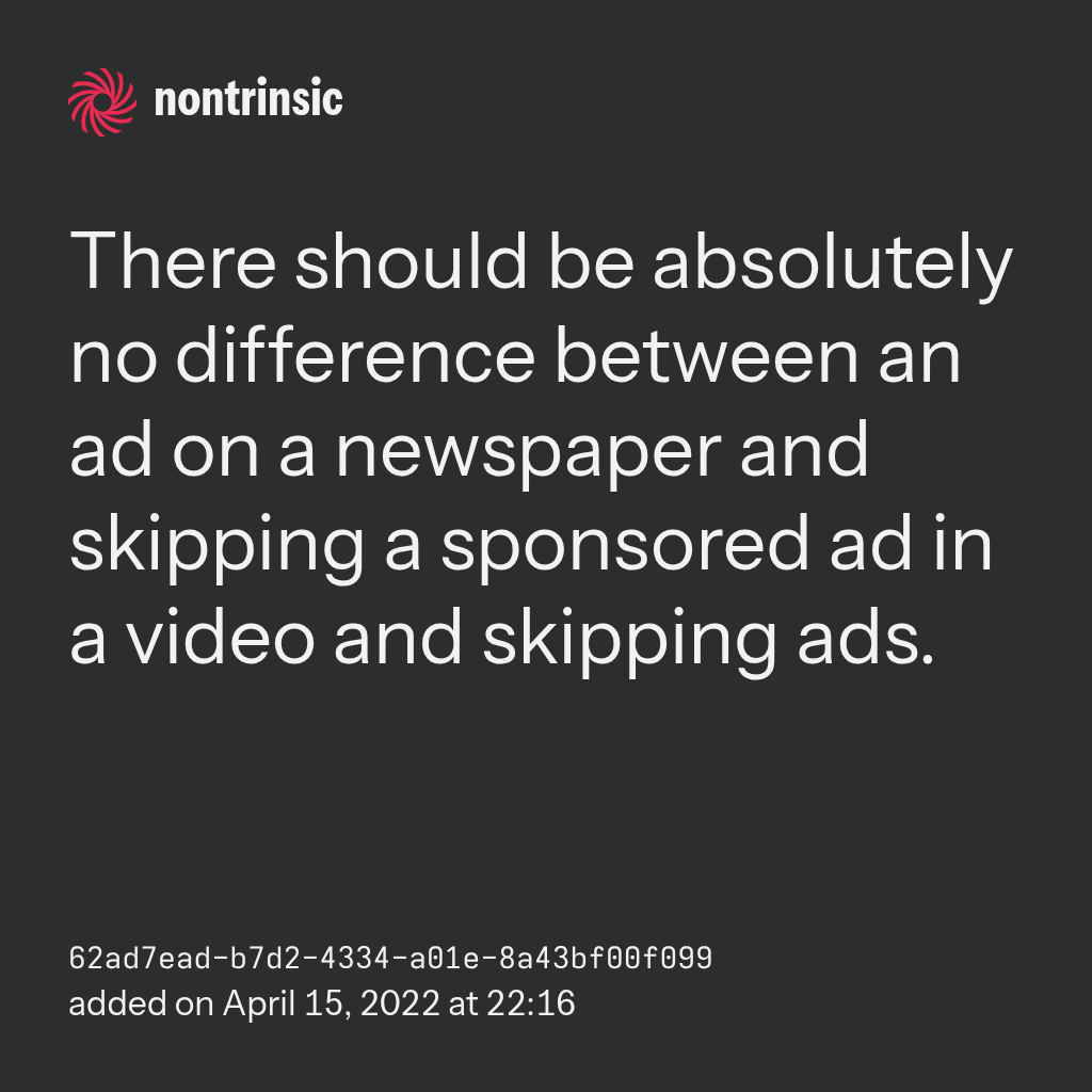 partagerThere should be absolutely no difference between an ad on a newspaper and skipping a sponsored ad in a video and skipping ads.