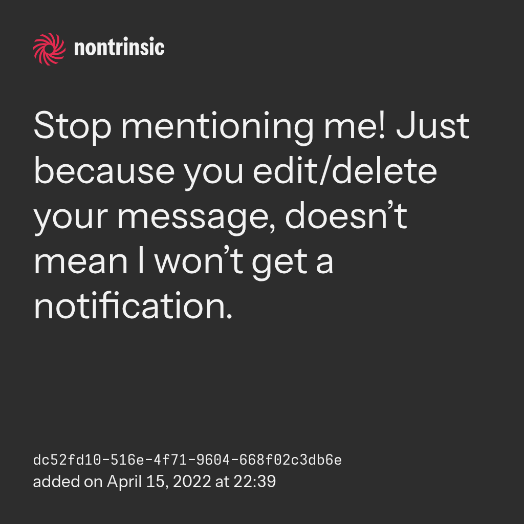 Stop mentioning me! Just because you edit/delete your message, doesn’t mean I won’t get a notification.