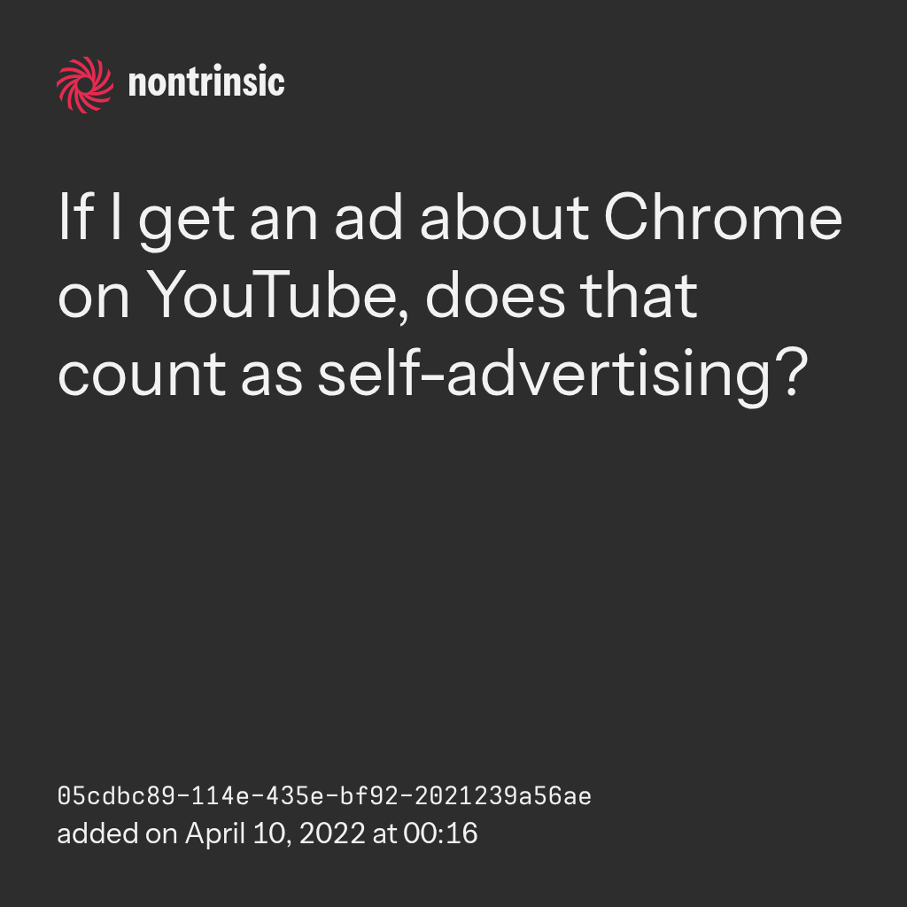 partagerIf I get an ad about Chrome on YouTube, does that count as self-advertising?