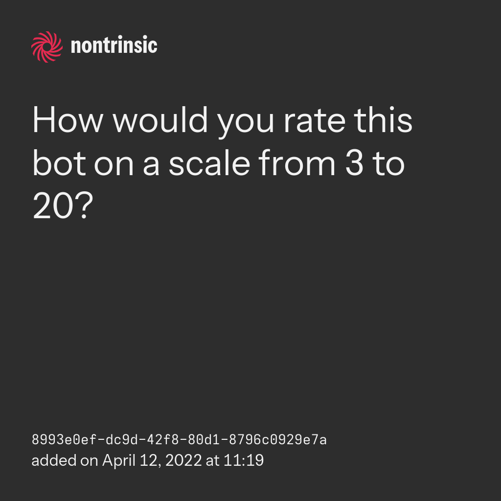 partagerHow would you rate this bot on a scale from 3 to 20?