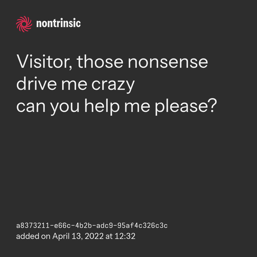 partagerIt’s the nonsense, Visitor. It’s the nonsense that drives us. It’s the nonsense that brought you here. You read the nonsense, just as I did.