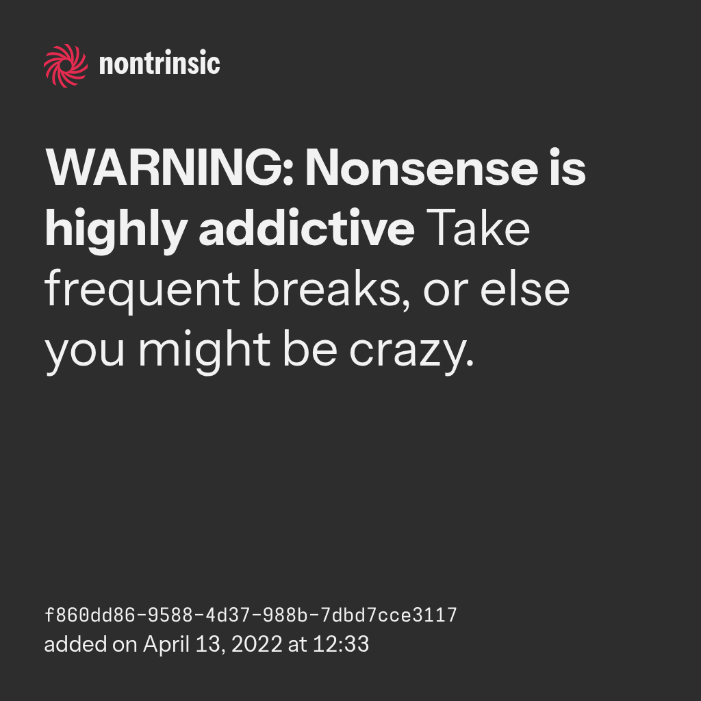 partagerWARNING: Nonsense is highly addictive Take frequent breaks, or else you might be crazy.