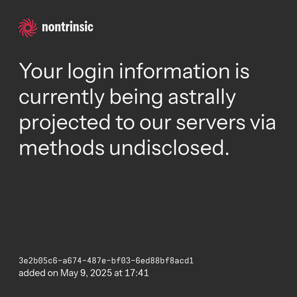 bagikanYour login information is currently being astrally projected to our servers via methods undisclosed.