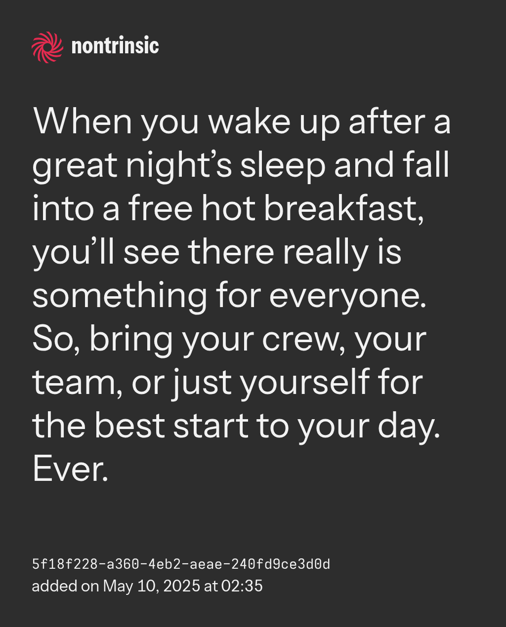 bagikanWhen you wake up after a great night’s sleep and fall into a free hot breakfast, you’ll see there really is something for everyone. So, bring your crew, your team, or just yourself for the best start to your day. Ever.