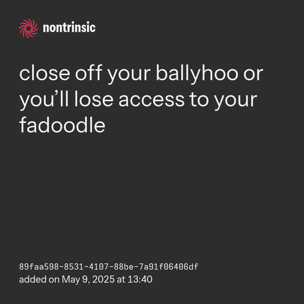 bagikanclose off your ballyhoo or you’ll lose access to your fadoodle