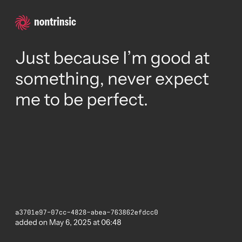bagikanJust because I’m good at something, never expect me to be perfect.